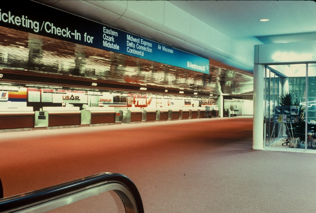 July 22, 1955: The passenger terminal moves to Howell Avenue with the completion of a three-concourse, two-level structure with 23 gates. The $3.2 million project forms the core of the Airport’s present terminal complex.