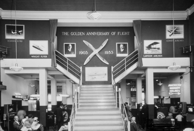 1929-1938: Despite the Great Depression, commercial aviation grows quickly. To accommodate the growing demand, a new hangar that served as an operating base for Northwest Airlines is built in 1931. In 1937, Pennsylvania Central Airlines (later Capital Airlines) begins offering flights from Milwaukee to Michigan, Ohio, Pennsylvania and Washington, D.C.